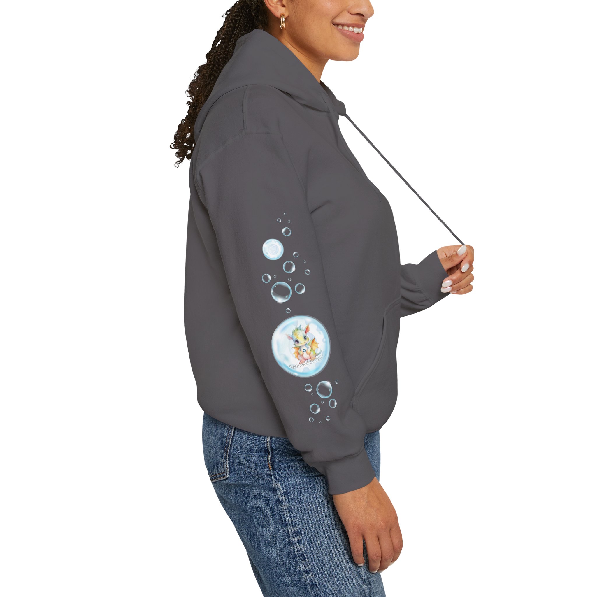 This unisex heavy blend hooded sweatshirt offers exceptional comfort. Crafted from a thick blend of cotton and polyester, it provides a plush, soft, and warm feel, making it an ideal choice for cold weather. The front features a spacious kangaroo pocket for added practicality, while the hood’s drawstring matches the base sweater color, enhancing its aesthetic appeal. Enjoy comfort while raising awareness.